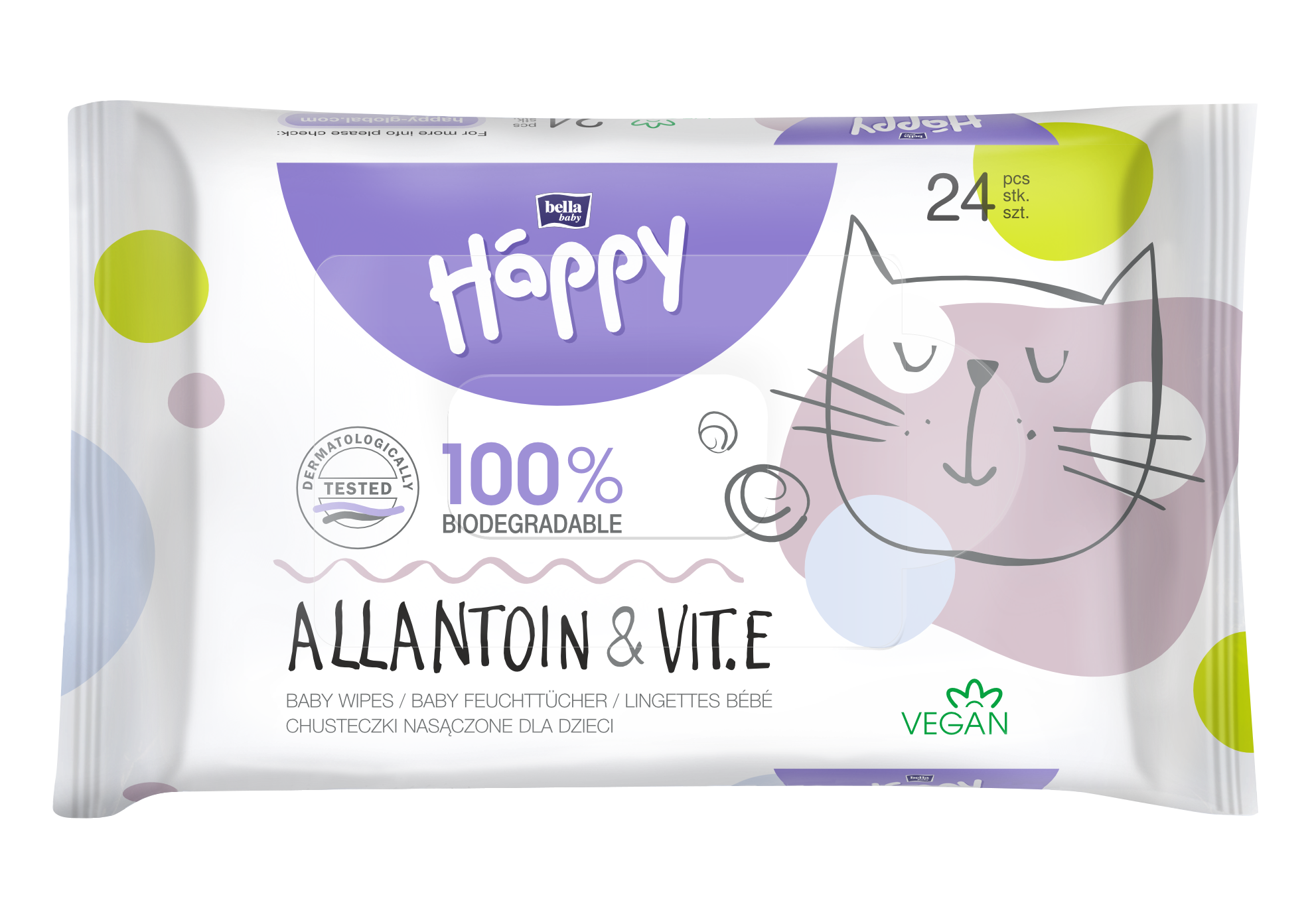 Die mit einer weichen Vliesstruktur hergestellten und mit Allantoin und Vitamin E getränkten bella baby Happy Feuchttücher sind für die Pflege aller Hauttypen geeignet. Dank sorgfältig ausgewählter Inhaltsstoffe und einem neutralen pH-Wert reinigen und pflegen sie die Haut des Babys sanft. Das enthaltene Allantoin und Vitamin E spenden der Haut hervorragend Feuchtigkeit und bilden eine Schutzschicht, die vor dem Austrocknen schützt. Sie enthalten keinen Ethylalkohol, keine Silikone und keine Parabene. Entwickelt, um die Haut des Babys zu pflegen.