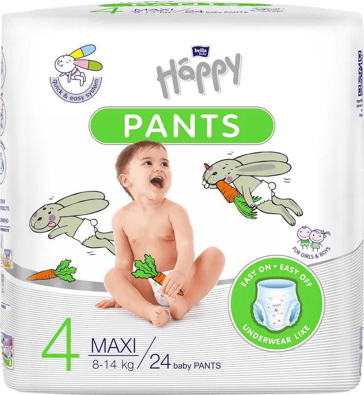 bella baby Happy Pants Maxi bieten vor allem Komfort und Sicherheit für Ihr Kind, das anfängt, Selbstständigkeit zu lernen. Das Quick & Easy System sorgt für einen schnellen Windelwechsel und die Rückkehr Ihres Kindes, um die Welt weiter zu erkunden. Die Sicherheit und Qualität unserer Produkte wurden durch das Dermatest-Zertifikat.