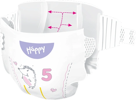 Die bella baby Happy Soft & Delicate Junior Windel sorgt für Komfort und Sicherheit. Die neue Kanaltechnologie gewährleistet eine schnelle Flüssigkeitsverteilung und ein noch besseres Trockenheitsgefühl für Ihr Kind in jeder Position und zu jeder Tageszeit. Die perfekte Passform der Windel minimiert das Risiko unerwünschter Auslaufs. Die Qualität und Sicherheit der Windeln wurden durch das Dermatest-Zertifikat und die positive Meinung des Instituts für Mutter und Kind bestätigt.